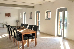 Essbereich: Sitzmöglichkeiten für 20 Personen an großer Tafel, Kinderhochstuhl